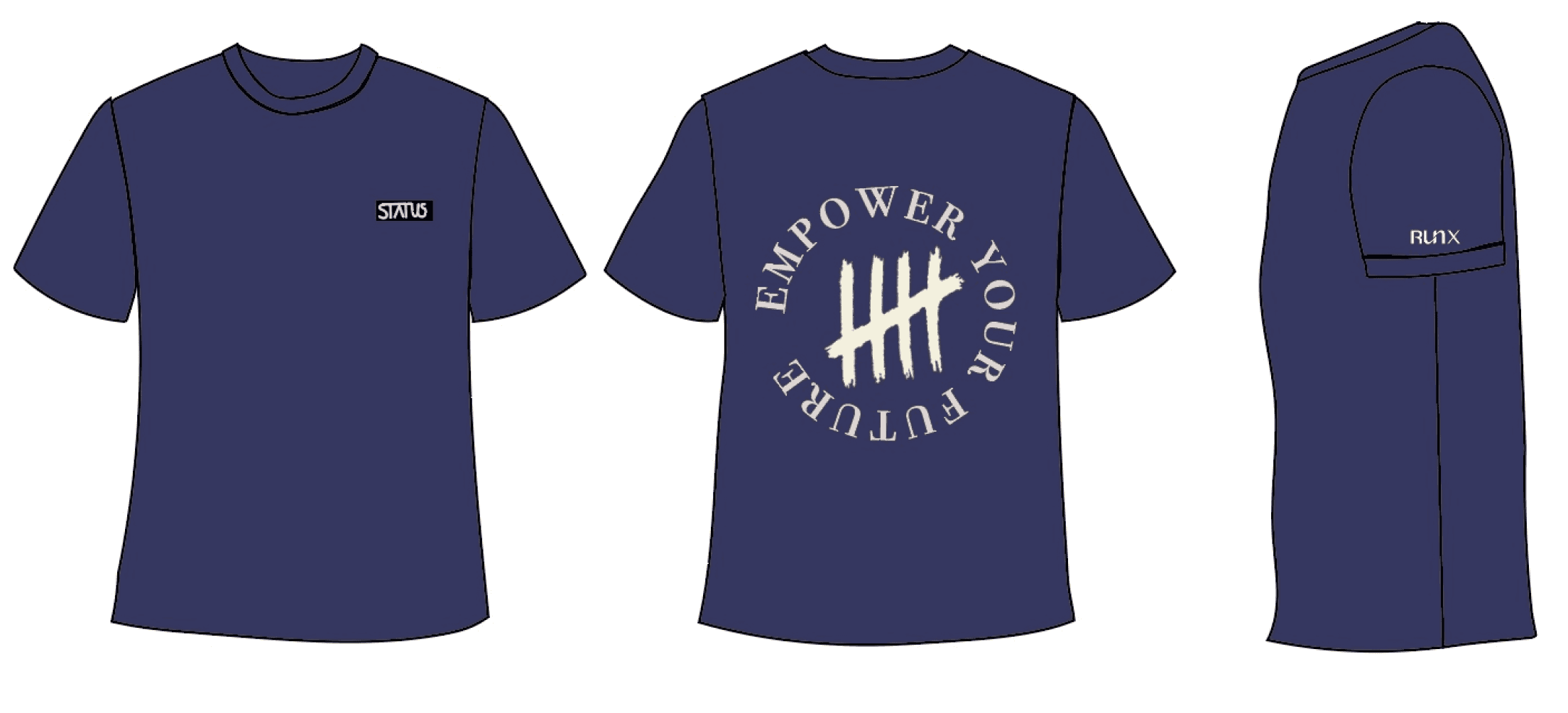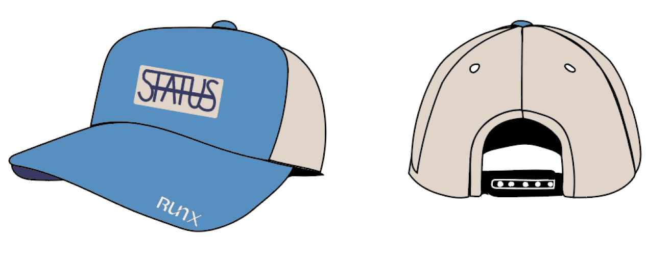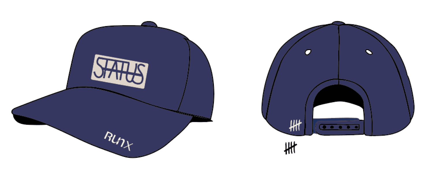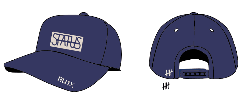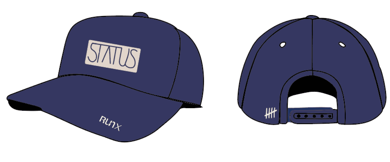 The next goal was to utilize two different logos and the word “status” in each of the clothing items. Below are the custom logos I made while incorporating the three requirements: the word “status”, the tally brand mark, and the “RunX” logo.