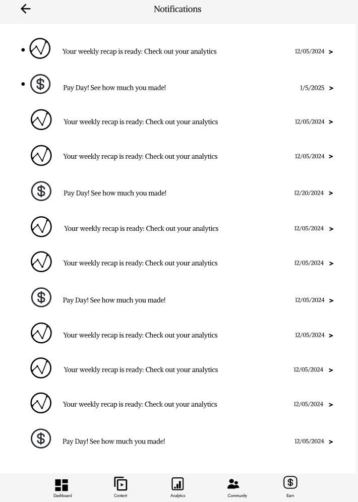 To start off the project, I had to pinpoint the exact area of struggle for the users, so I started to do some user testing. This was a simple test, which was a compilation of three different people completing tasks on the app. Some of these tasks included, locating the “schedule a video” to post ahead of time, locating certain analytical features, and accessing notifications for the monetization program. These tasks seemed small, but I left with my research and knew the exact problems the user faced.